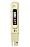 Ideal for all water purification applications, wastewater regulation, aquaculture, hydroponics, and colloidal silver. Perfect for both consumer or commercial use. Carry one in your pocket or toolbox at all times! Features Ideal for commercial use. Includes a carrying case with belt clip. Highly efficient and accurate due to its advanced microprocessor technology. Hold Function: saves measurements for convenient reading and recording. Auto-off function: the meter shuts off automatically after 10 minutes of non-use to conserve batteries. Measurement Range: 0-9990 µS. From 0-999 µS, the resolution is in increments of 1 µS. From 1000 to 9990 µS, the resolution is in increments of 10 µS, indicated by a blinking 'x10' image. Built-in digital thermometer Display: large and easy-to-read LCD screen. Factory Calibrated: our meters are calibrated with a 700 µS NaCl solution. Meters can be recalibrated with a mini-screwdriver. Specifications TDS Range: 0 - 9990 µS (µS/cm) Temp. Range: 0 - 80 degrees Celsius Resolution: 1 µS; 10 µS, 0.1 degree Celsius Accuracy: +/- 2% ATC: Built-in sensor for Automatic Temperature Compensation of 1 to 50o C (33 to 122o F) Power source: 2 x 1.5V button cell batteries (included) Battery life: 1000 hours of usage Dimensions: 15.5 x 3.1 x 2.3cm (6.1 x 1.25 x 1 inches) Weight with case: 76.5g (2.7 oz) Weight without case: 56.7g (2 oz) Read more